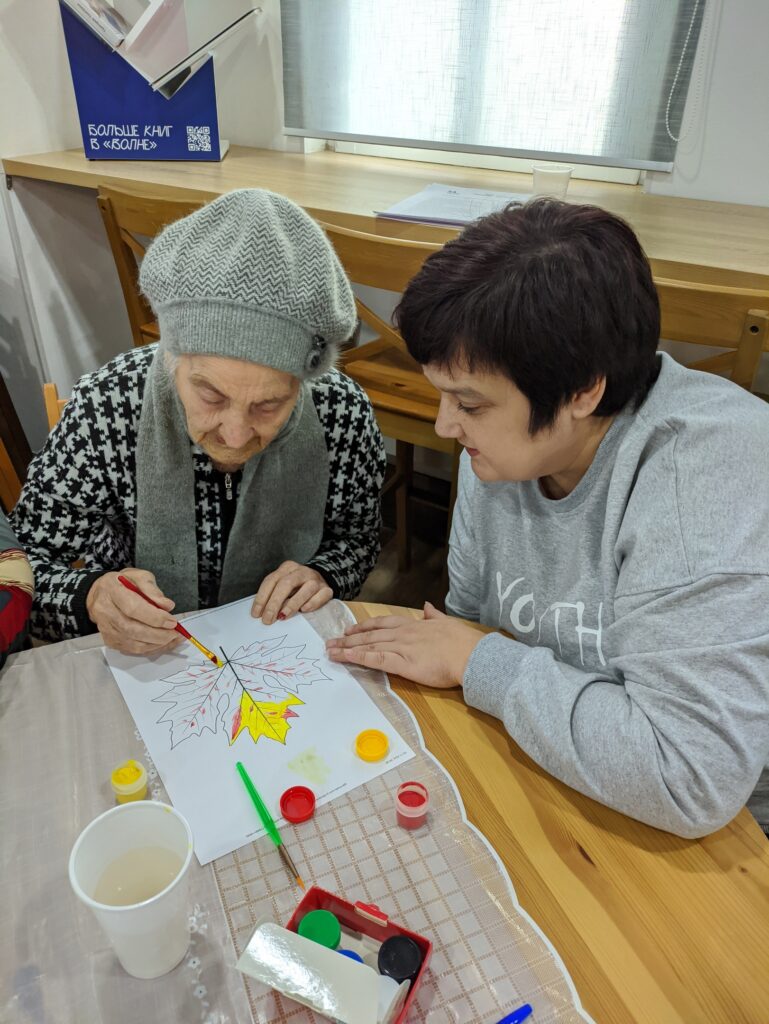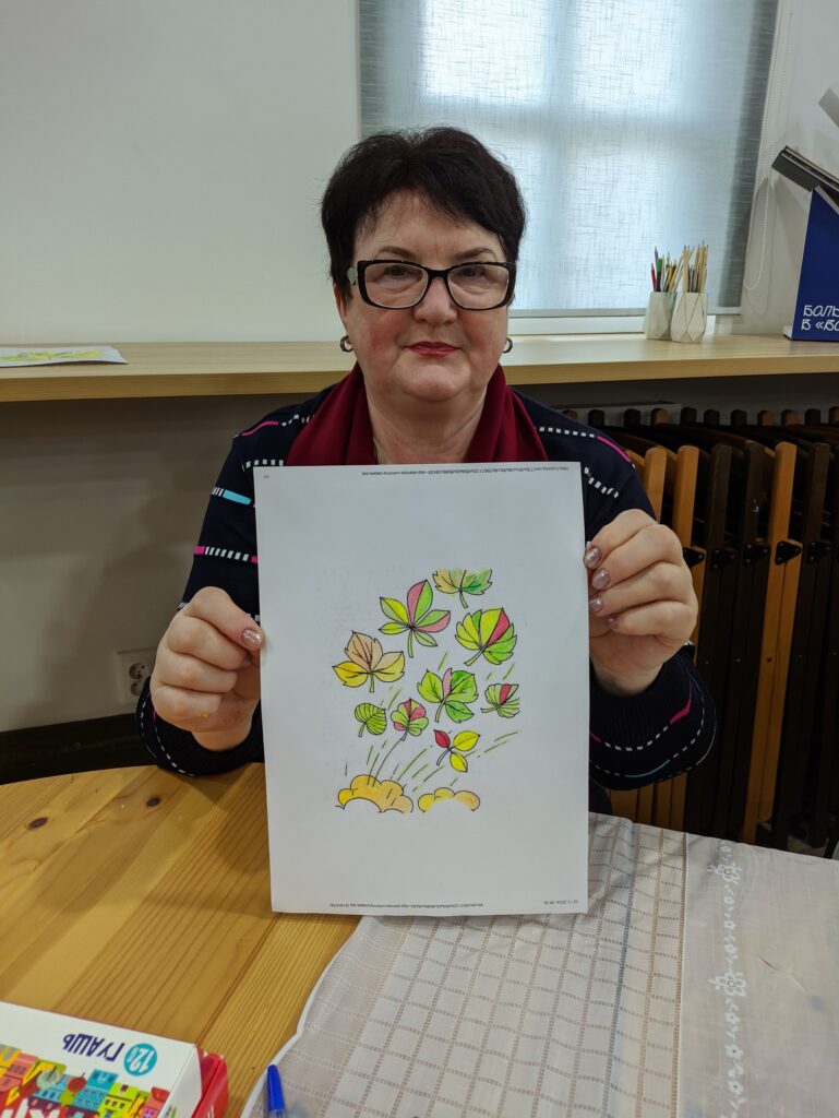 ✅ В период встречи с врачом психиатром со второй группой больными деменцией участниками проекта была проведена арт -терапия на тему: «Осенний листопад».